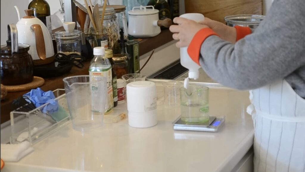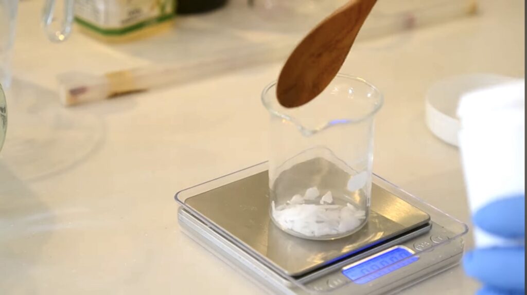 1.精製水と苛性ソーダを別々の容器に計量して用意する。