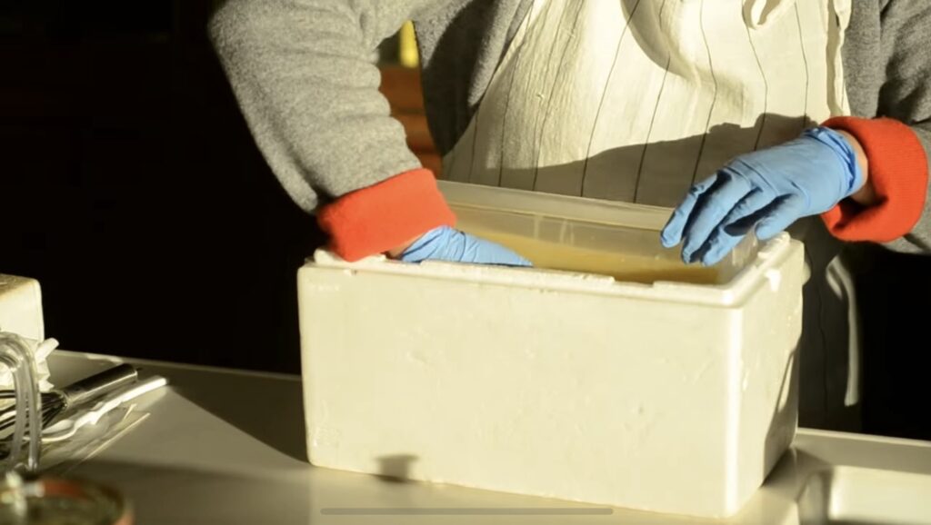 9.発泡スチロールやクーラーボックスの箱に入れ、安定した場所で24時間保温する。